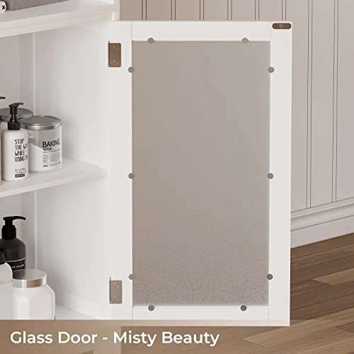 - Quality Material: Constructed of premium-quality P2 MDF and tempered glass , easy to clean, This bathroom cabinet durable and easy to maintain,Built to last through years of splashes and steamy showers.