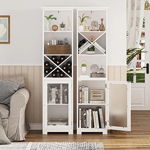 - Multifunctional Cabinet: Bring some retro elegance into your bathroom with this cabinet. A tall and slimline 64″ x 14.6″design, it is ideal for fitting into small spots, the cabinet can not only be placed in the bathroom,but also suitable for other rooms,be used as display shelf,bookcase,bathroom washroom storage,shelf display,flower plant stand,cosmetic storage.