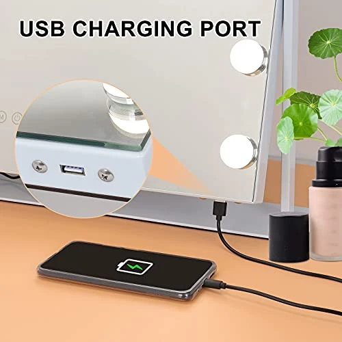 - 【3 Lighting Modes】Hollywood makeup mirror with lights is 3 lighting modes. Warm light (light bulb color) is suitable for party and evening party makeup and natural light close to the sun (daylight color) is suitable for outdoor sports makeup and cool light, is suitable for daily work makeup. According to the memory function, even if it is turned off once, it can be turned on again with the desired brightness.