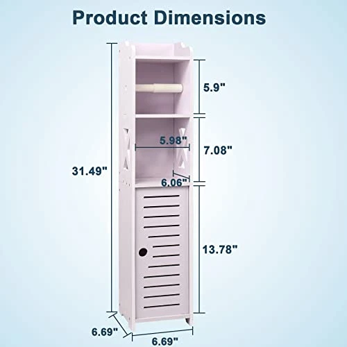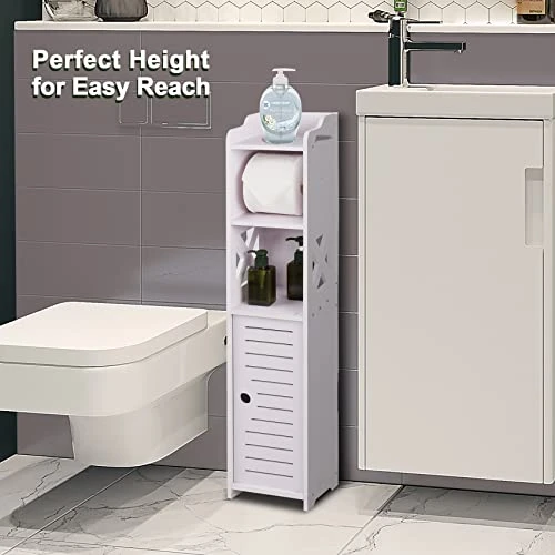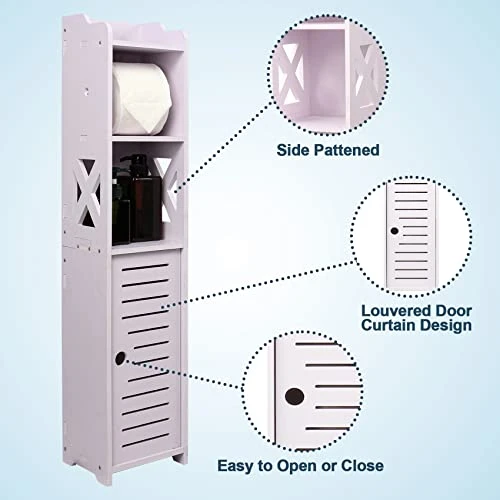 - 【Moisture-proof Premium Material】This utility bathroom cabinet is made of friendly PVC foam board , which provides safety and security while offering convenience.The bottom of this toilet storage storage features with raised feet to keep away from floor,also the slatted design on both sides provide ventilated and moisture resistant function