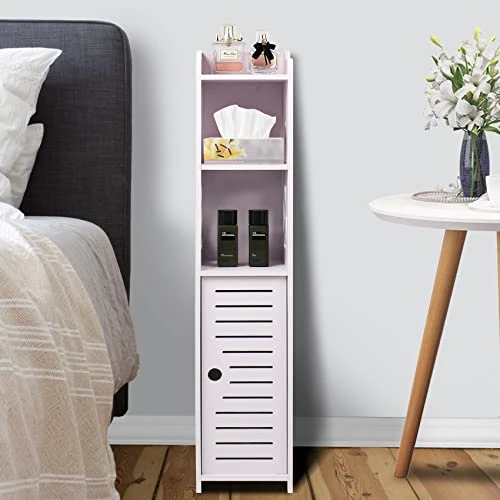 - 【Multifunction Bathroom Storage】The shutter door allows for good placement of personal items. Not only use it as a bathroom storage cabinet, also suitable for bedroom and living room organizer,different objects such as candles, potted plants, toiletries, towels and etc can be place on it..