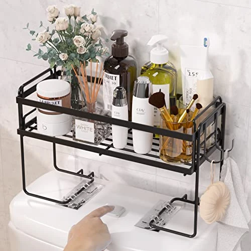- 【Unique Design】The whole above toilet storage does not contain screws and is fixed with non-marking adhesive. No need to drill holes to destroy the wall, and the overall appearance is more beautiful. Enough height, you can press the flush button.