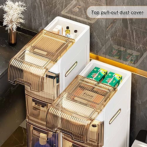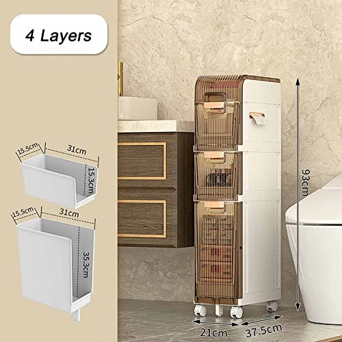 - 【Waterproof Bathroom Organizer】This slim bathroom storage cabinet made from PP+ABS waterproof material, literally perfect for bathroom, easy to clean; the bottom of this toilet storage cabinet silent roller design, easy to move.