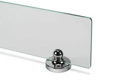- Moveable wall brackets can be positioned using the same fixing points left by your old shelf. Toughened clear glass accessory.