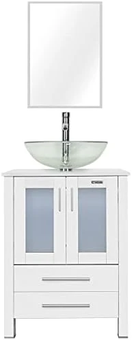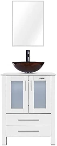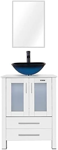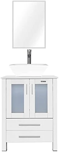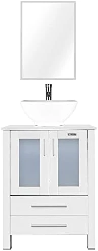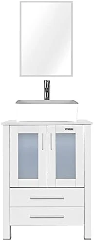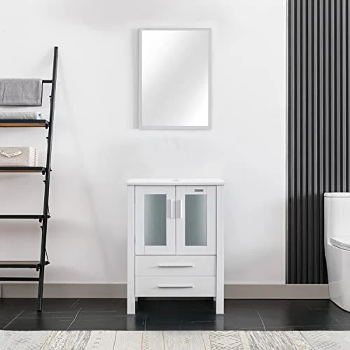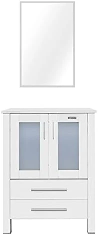 - DIMENSION: 24’’ L x 20’’ W x 32’’ H white bathroom vanity; 20” W x 27.6” H mirror, provides excellent storage for bathrooms with limited space; suitable for small space bathroom and restroom; Two drawers for you to storage.