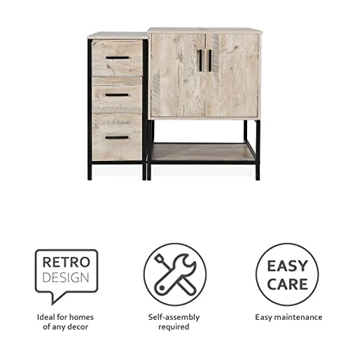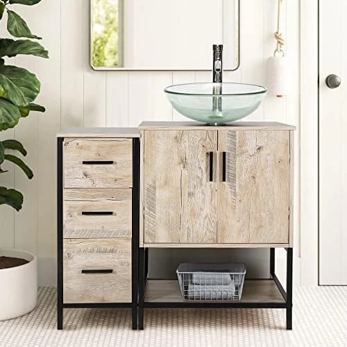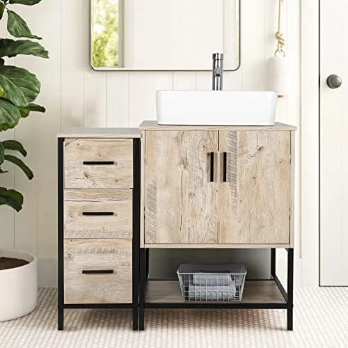 - 【Ample Storage】:A total of one door storage space, three drawers, and the bottom shelf give you huge storage space, can fully store your bathroom items, towels, toiletries, cleaning supplies, etc.No longer worried that the narrow bathroom space will become messy