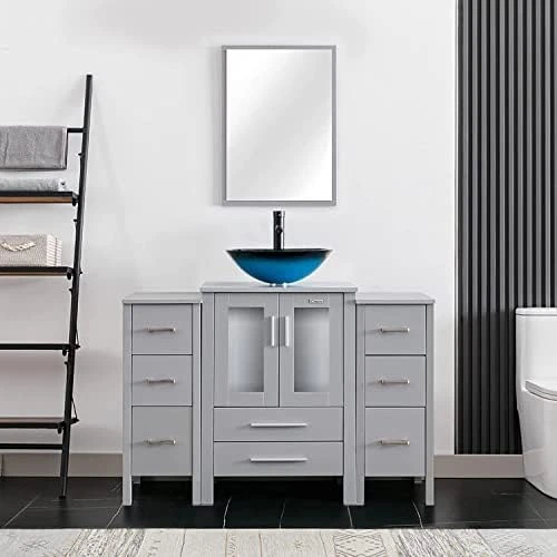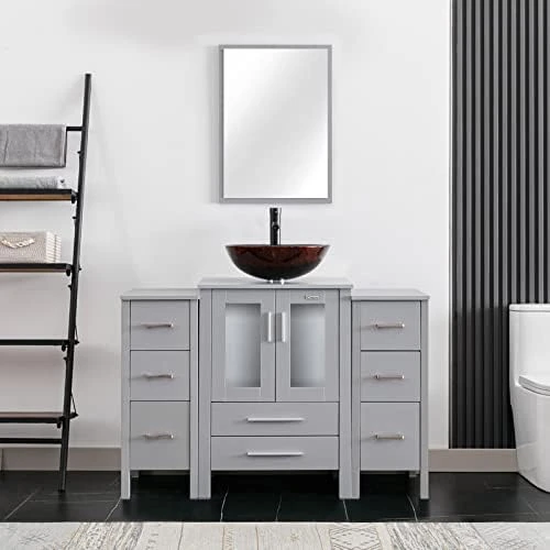 - MORDEN DESIGN: Grey bathroom vanity with vivid natural wood texture, Looks elegent and will be suitable for different decoration styles.