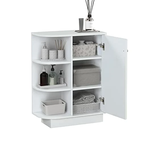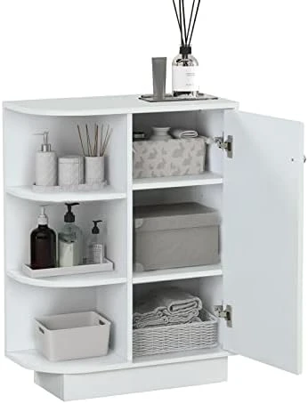 - [Unique Arc Edge Design]Open style shelf is designed into arc, which ensures good-looking and it’s safe for users. This stylish and useful design cabinet is suitable for bathroom, kitchen, living room, veranda and so on.