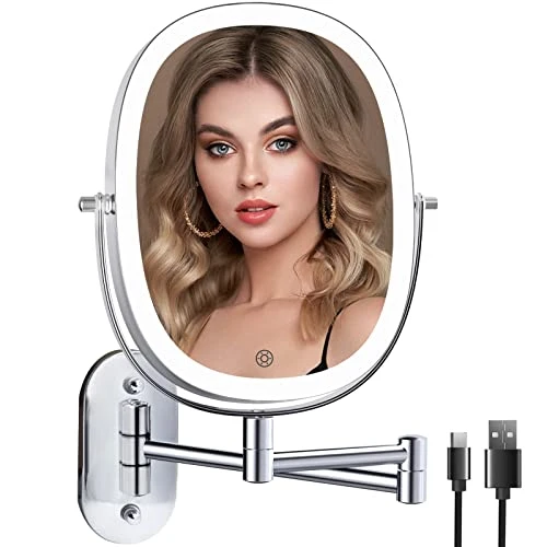 - 【Rechargeable Wall Mounted Lighted Makeup Mirror】This wall mounted magnifying mirror with lights has a 2000mAh rechargeable lithium battery. large capacity lithium battery provides longer service life, so you don’t need to replace the battery frequently. Type-C cable is included (charger is not included).