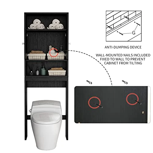 - 【Space-saving Design】Designed to fit behind most toilet setups, this over the toilet storage includes an anti-tipping device for added stability. Keep your bathroom organized without sacrificing too much space with this above toilet storage cabinet.