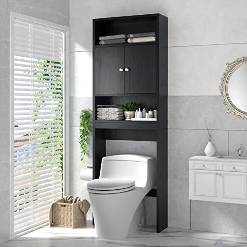 - 【Ample Storage Space】This 3-tier over toilet storage cabinet features 2 open shelves and a storage cabinet with doors for quick access to daily necessities. An enclosed cabinet is perfect for storing towels, toilet paper, cosmetics, and more, helping to create a tidy and spacious bathroom.
