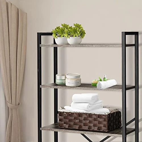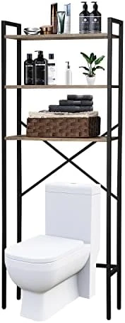 - Elegant Design &Functional Storage: The bathroom shelves over toilet is made in black metal frame and vintage rustic particle board, which shows the elegant and noble taste and provide unique scenery in your bathroom. The above toilet storage cabinet is not only suitable for living room, kitchen, entryway, laundry, balcony, porch, dormitory, hotel but also can be used as storage cabinet, kitchen rack, plant stand, laundry organizer,ect.