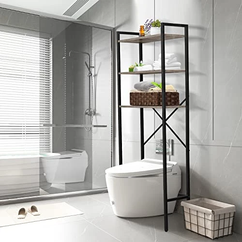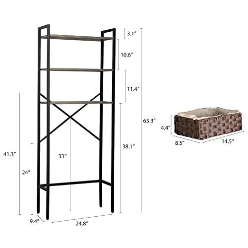 - Fit for Your Toilet: The storage shelves with 3-tier open shelves is a problem solver that keeps your bathing, towels and other suppliesand more.Our bathroom organizer sizes is 24.8″*9.4″*63.3″, bottom shelf is 38 inches from ground. The over toilet storage is fits over most standard toilets, easily fits into space behind your toilet.