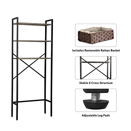 - Stable X-brace Frame: The metal frame is incredibly strong and corrosion-resistant which ensures the stability and durability of the shelf. The X-bracing design can greatly increase the stability and durability of over the toilet storage, makes ensure that it will not shake when used. Adjustable foot pads can keep stable and protect the ground from scratches.