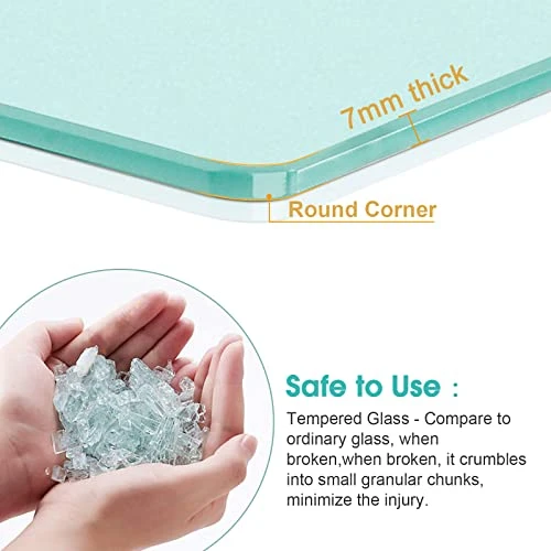 - Rail Protect Design: This glass shelf with rail is helpful to prevent your cosmetics or toiletries from falling down. And it offers a large capacity for storing your essentials, which is ideal for using in bathrooms, lavatory, toilets or washroom.