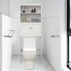 - 【Waterproof Protection】The surface of the bathroom storage cabinet over toilet provides UV spray paint treatment with good water and moisture resistance, which is perfect for wet bathroom, toilet, kitchen, and laundry room interior spaces.