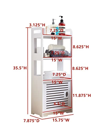 - Included Components: Bathroom Floor Storage Cabinet With 3 Open Shelfs