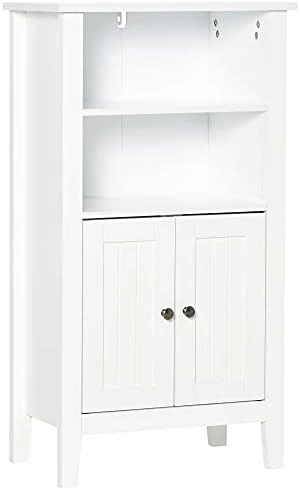 - SPACIOUS STORAGE: This bathroom corner cabinet has 2-tier open shelves and a double door cabinet to provide spacious storage for bathroom supplies while taking up little floor space and helps keep your room organized.