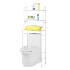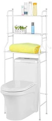 - [Space Saving]: This 3-tier over-the-toilet bathroom spacesaver effectively utilizes unused space above the toilet to create multiple extra storage spaces for overcrowded bathrooms without taking up most of the space; Comes with 2 hooks on one side and 3 layers of the shelves, suitable for store shampoo, towel, shaving razor, roll paper, tissue box, etc.