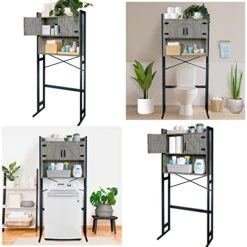 - [Wide Use]: The overall size of over toilet bathroom shelf is 22.05 x 9.84 x 59.45inch, the simple style over toilet bathroom shelf brings you a new sense of fashion, is the perfect decoration for your bathroom / laundry, providing you with simple and convenient lifestyle