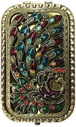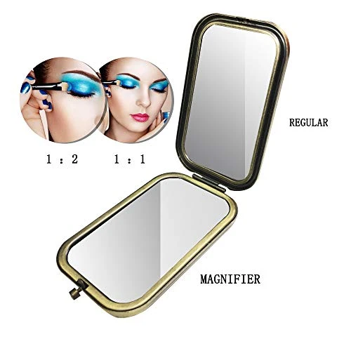 - Hollow-out design of the face, Butterfly and flowers sculpture. Super-compact, two-sided travel mirror, easy be carried inside your bag wherever you go! Featuring a magnifying glass on one of the sides, a normal glass on the other side, it’s perfect for seeing with perfect clarity every detail on your face, women used compact mirrors to refresh their makeup