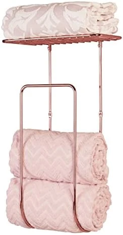 - EASY INSTALLATION: Wall mount holder easily installs on bathroom walls with the included hardware; No assembly needed, the storage rack is ready to hang and requires minimal wall space; Use in bathrooms throughout the home – guest baths, half bathrooms, powder rooms and the master bath; Holds many towel sizes, just roll them to fit