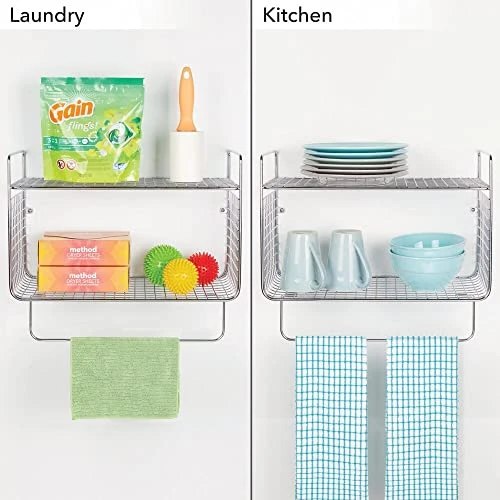 - MAXIMIZE SPACE: This large shelving unit is perfect for holding extra supplies ; Works great in a laundry room to store stain fighters, bleach pens, dryer sheets or clothes pins; Use it in the kitchen to keep spices, seasonings, recipe boxes, utensils and dishcloths and towels at the ready; Useful in the garage to keep small tools or gardening essentials and rags easily accessible