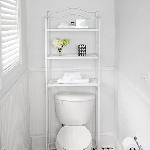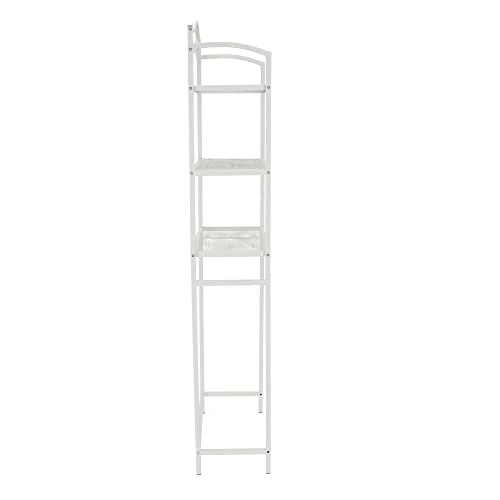 - Features three fine metal mesh shelves and a sturdy, free-standing metal frame in a white finish