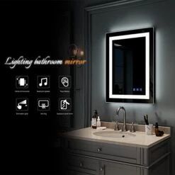 Bonnlo 32″×24″ (800×600mm)Bluetooth Mirror,Led Bathroom Mirror Smart Mirror With Bluetooth Speaker, Anti-Fog Bathroom Led Mirror With Memory Touch, Dimmable Espejos Para Baños, Vertically/Horizontally