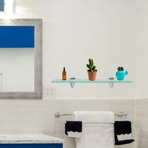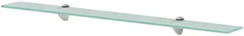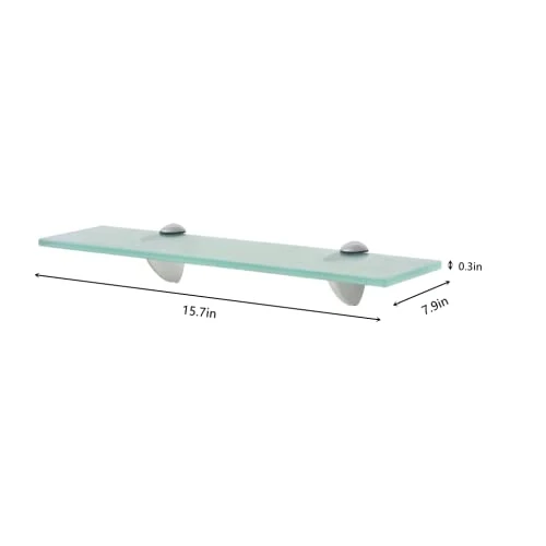 - This glass shelf consists of 2 standard clip brackets made of zinc alloy and tempered safety glass with a thickness of 0.3″.