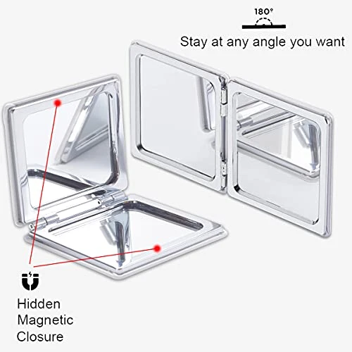 - ★【Foldable Design With Magnetic Opening and Closing】:This Square mirror has two hidden magnetic buckles that serve as a closure. The hinge allows you to open it to a full 180-degree angle when laid flat on a surface,No fear that the switch is broken.
