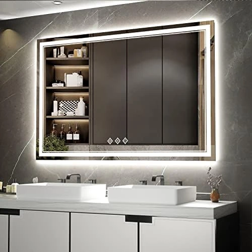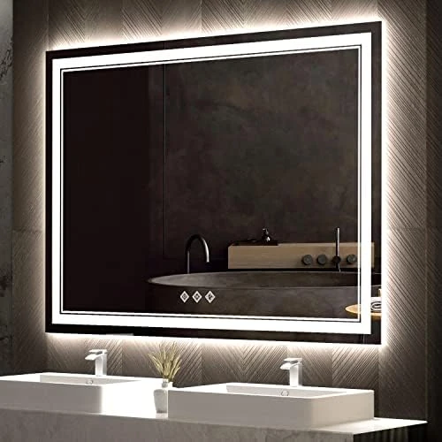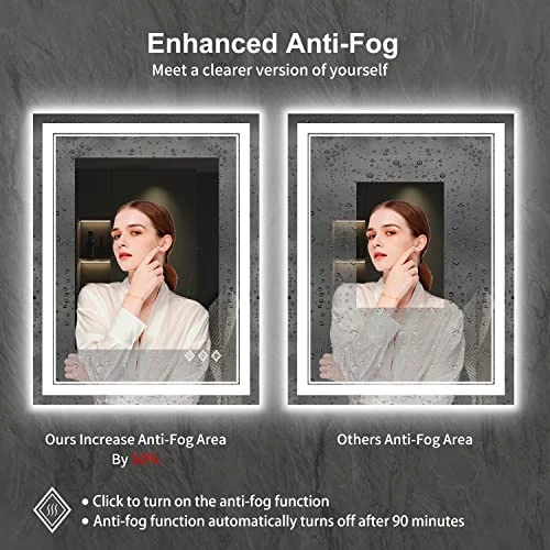 - 🔥【150% Enhanced Anti-fog】 Upgraded LED mirror for bathroom increases the anti-fog area by 50%, solving the problem of poor anti-fog effect of lighted mirror in the market. Click the anti-fog button to control the anti-fog ON/OFF. Memory function can remember your settings.