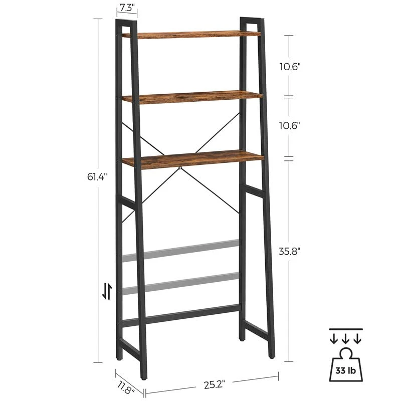 - What You Get: An over-the-toilet rack that is made of sturdy particleboard and a stable steel frame for long service life. The wonderful mixture of rustic brown and matte black color adds a warm atmosphere to your bathroom