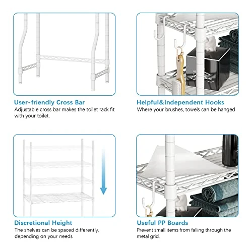 - INTELLIGENTLY DESIGNED: This space-saving bathroom rack can not only convenitent to storage toilet items in your bathroom neatly, each shelf can be adjusted in height to meet your various needs.